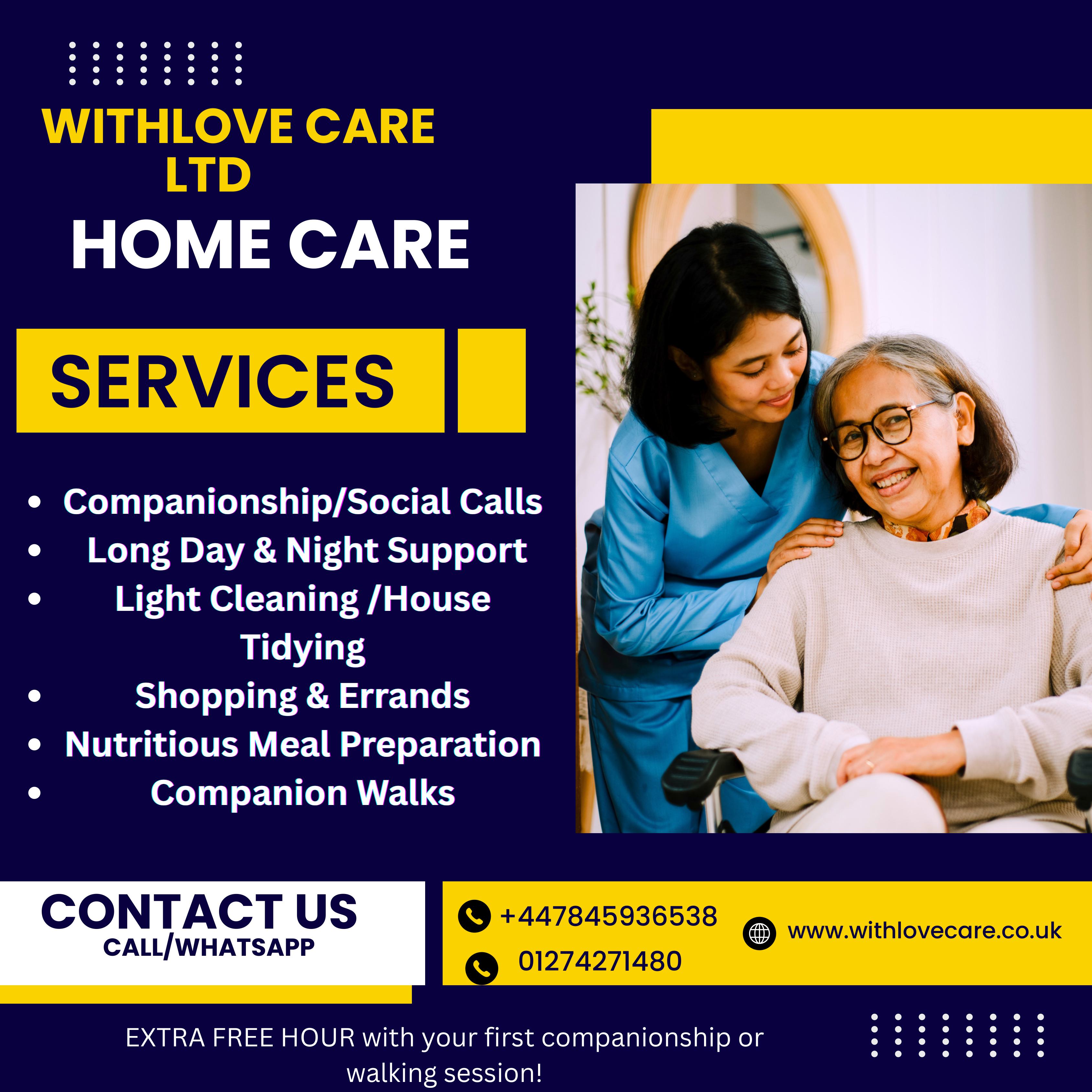 Based in BD3, WithLove Care Ltd provides high-quality companionship and domestic support to help you live comfortably and independently at home.